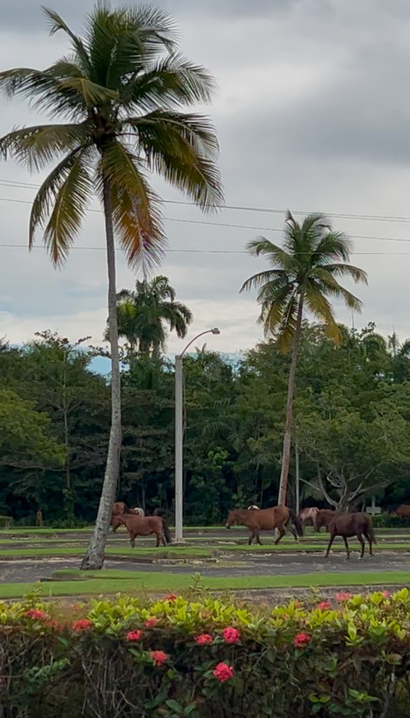 As the sun rose over the island, the sea shimmered with light and the sounds of the waves lingered in the salty air. That is when I saw them – a band of wild horses moving freely along the resort property. Some grazed, some wandered, and others stood watch while their foals stayed close. They were strong and untamed, yet completely at ease, as if they belonged exactly where they were meant to be.