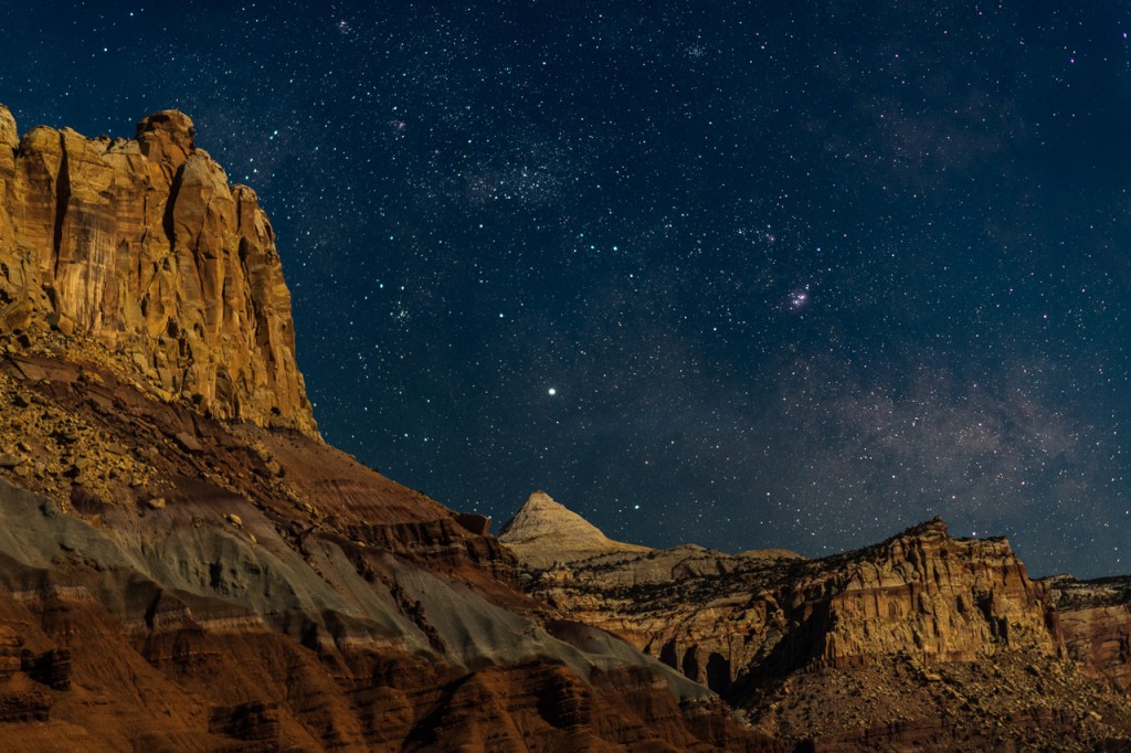 Capitol Reef National Park is where red rock canyons, cliffs, and the dramatic Waterpocket Fold meet some of the darkest skies in the West, earning it a Gold Tier International Dark Sky Park designation. By day, the desert teems with life—ringtails, raccoons, night snakes, owls, mountain lions, and 16 species of bats all rely on natural darkness to hunt, feed, and navigate, while migratory birds use the stars to find their way. By night, the park becomes a natural observatory, where the Milky Way stretches overhead in stunning clarity, inspiring wonder and supporting human health through darkness that encourages sleep and melatonin production. Each September, Heritage Starfest brings visitors together for ranger talks, telescope viewing, and unforgettable night skies, while careful stewardship of artificial light ensures both people and wildlife can thrive. Slow down, let your eyes adjust, and experience Capitol Reef the way it was meant to be seen—where night is more than time; it’s a landscape of stars.